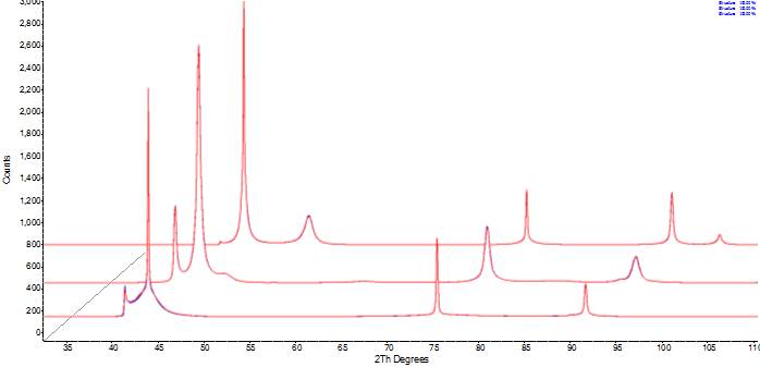 2. The input file is set up for Nstr = 100 sequences each with Nv = 500 layers with pa = 0.9999 which gives “unfaulted” cubic Cu. You should get Rwp around 31%. Note that some experimental reflections are significantly broadened relative to others.